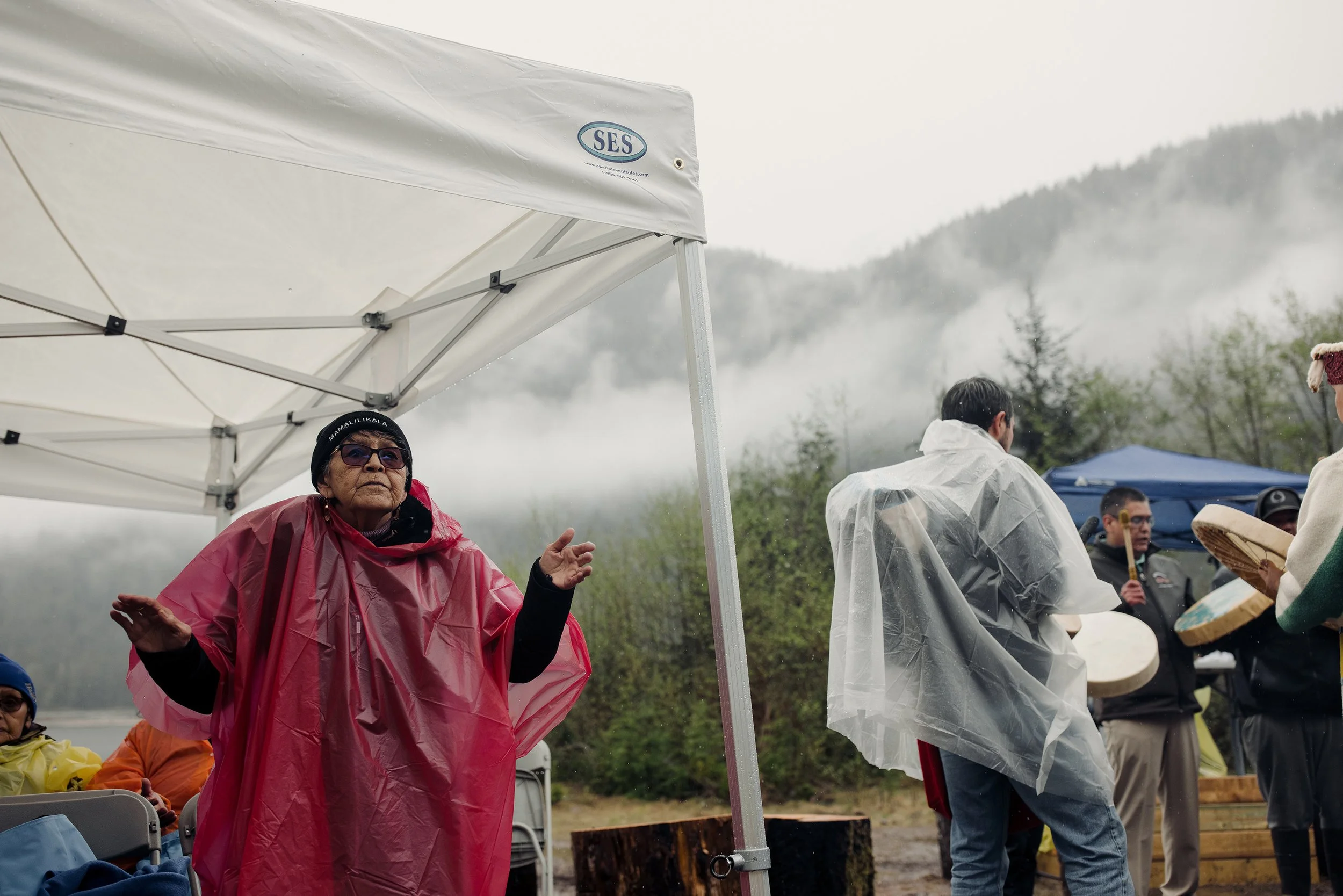 KEVIN CRANMER DRIED HIS DRUM BY THE FIRE AND PEOPLE WARMED UP WITH SEAFOOD CHOWDER WHEN MORE THAN 100 PEOPLE GATHERED FOR THE MAMALILIKULLA’S IPCA DEDICATION CEREMONY, INCLUDING REPRESENTATIVES FROM THE B.C. GOVERNMENT. BUT THE FEDERAL GOVERNMENT STILL HAS NOT FORMALLY RECOGNIZED THE PROTECTED AREA.