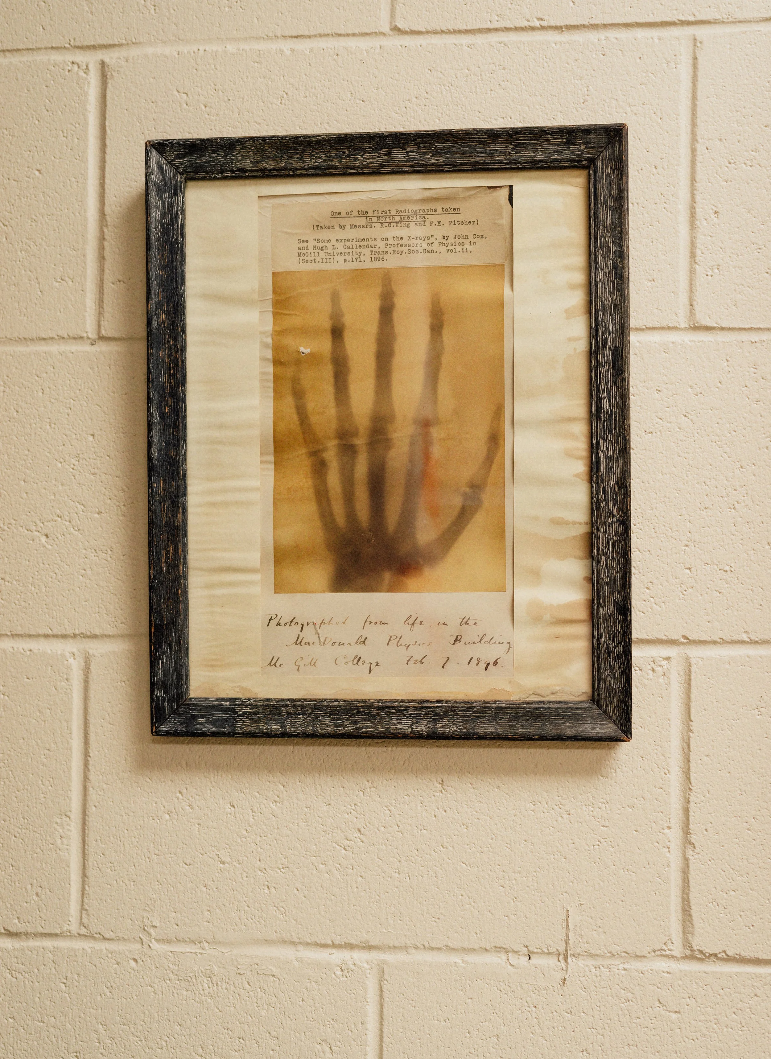 THE FIRST X-RAY IMAGE TAKEN IN NORTH AMERICA HANGING AT MCGILL UNIVERSITY IN MONTREAL, CANADA, 2022.